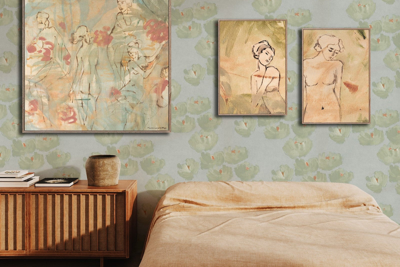 Seascapes, landscapes, and figures—spliced, stacked, and stripped of rules. This series doesn’t sit quietly; it clashes, teases, and pulls you in. Think loose gestures, off-kilter compositions, and moods that shift with every glance.Hang them together, with wallpaper, and the wall becomes a statement—raw, layered, and completely your own.