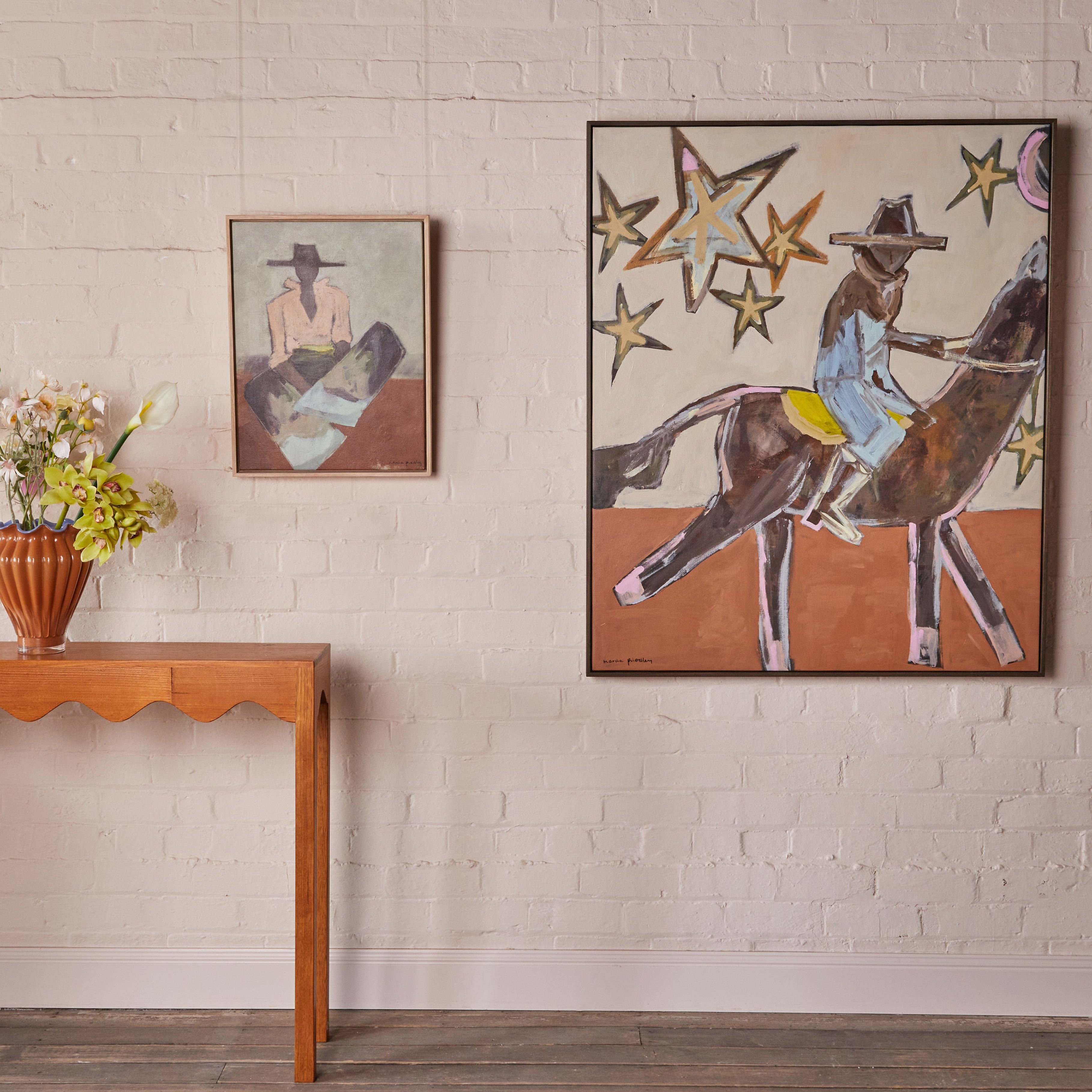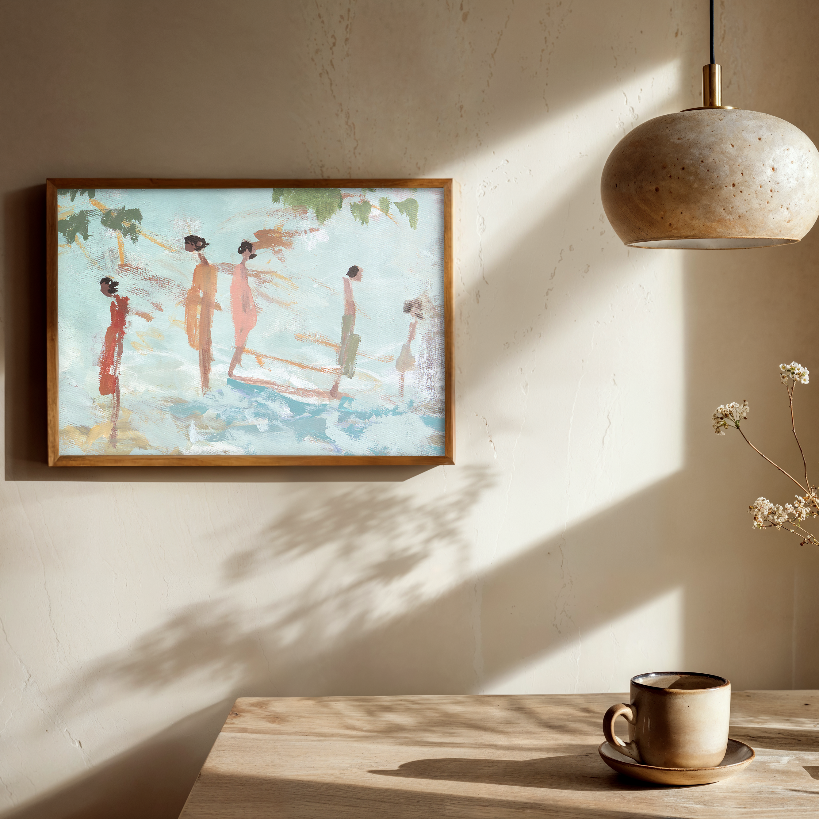 Seascapes, landscapes, and figures—spliced, stacked, and stripped of rules. This series doesn’t sit quietly; it clashes, teases, and pulls you in. Think loose gestures, off-kilter compositions, and moods that shift with every glance.Hang them together, with wallpaper, and the wall becomes a statement—raw, layered, and completely your own.